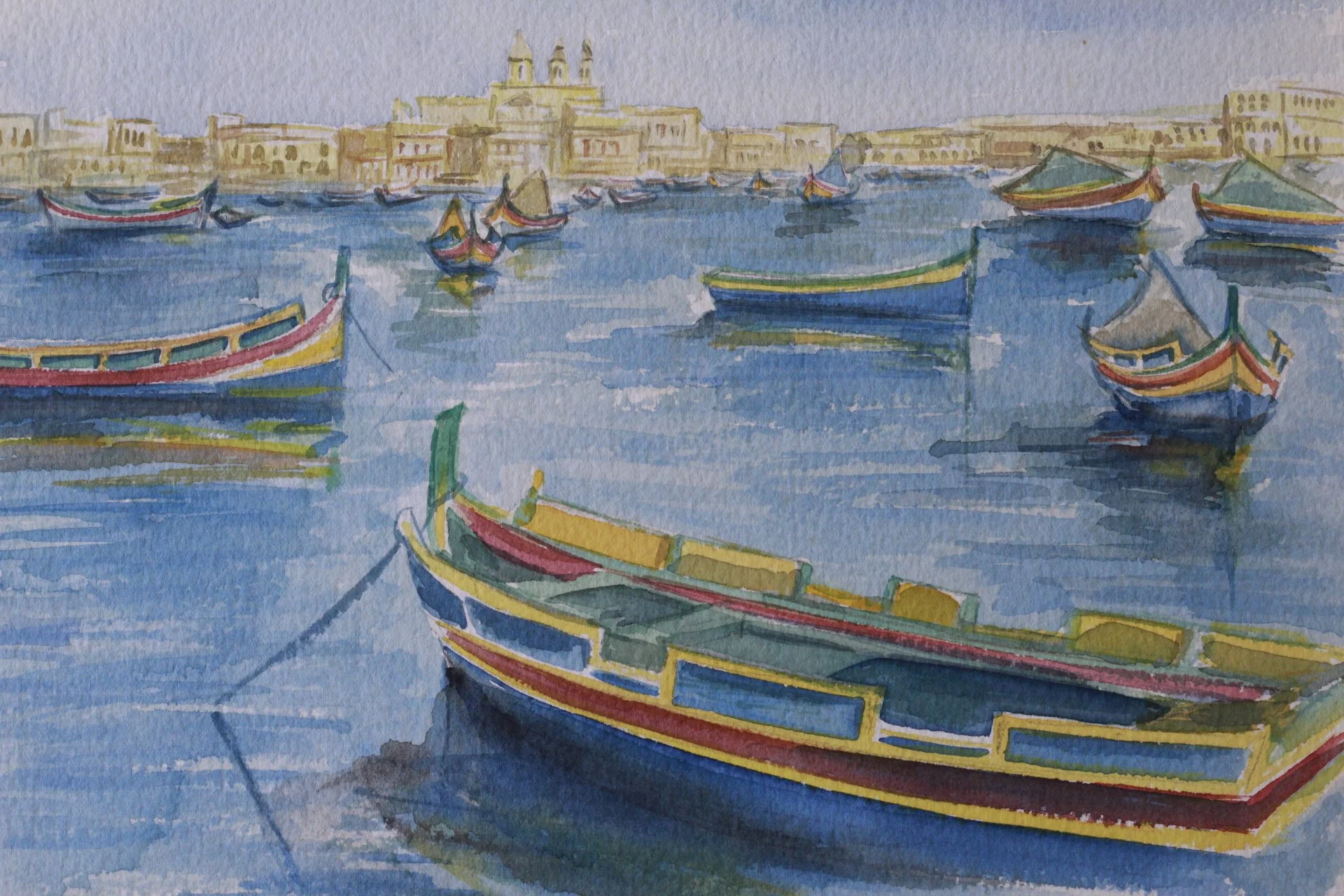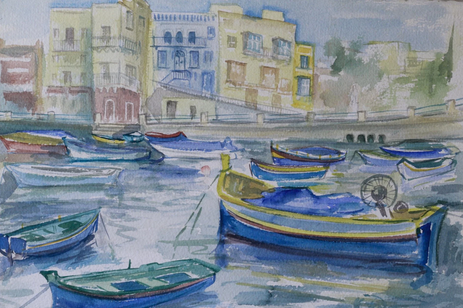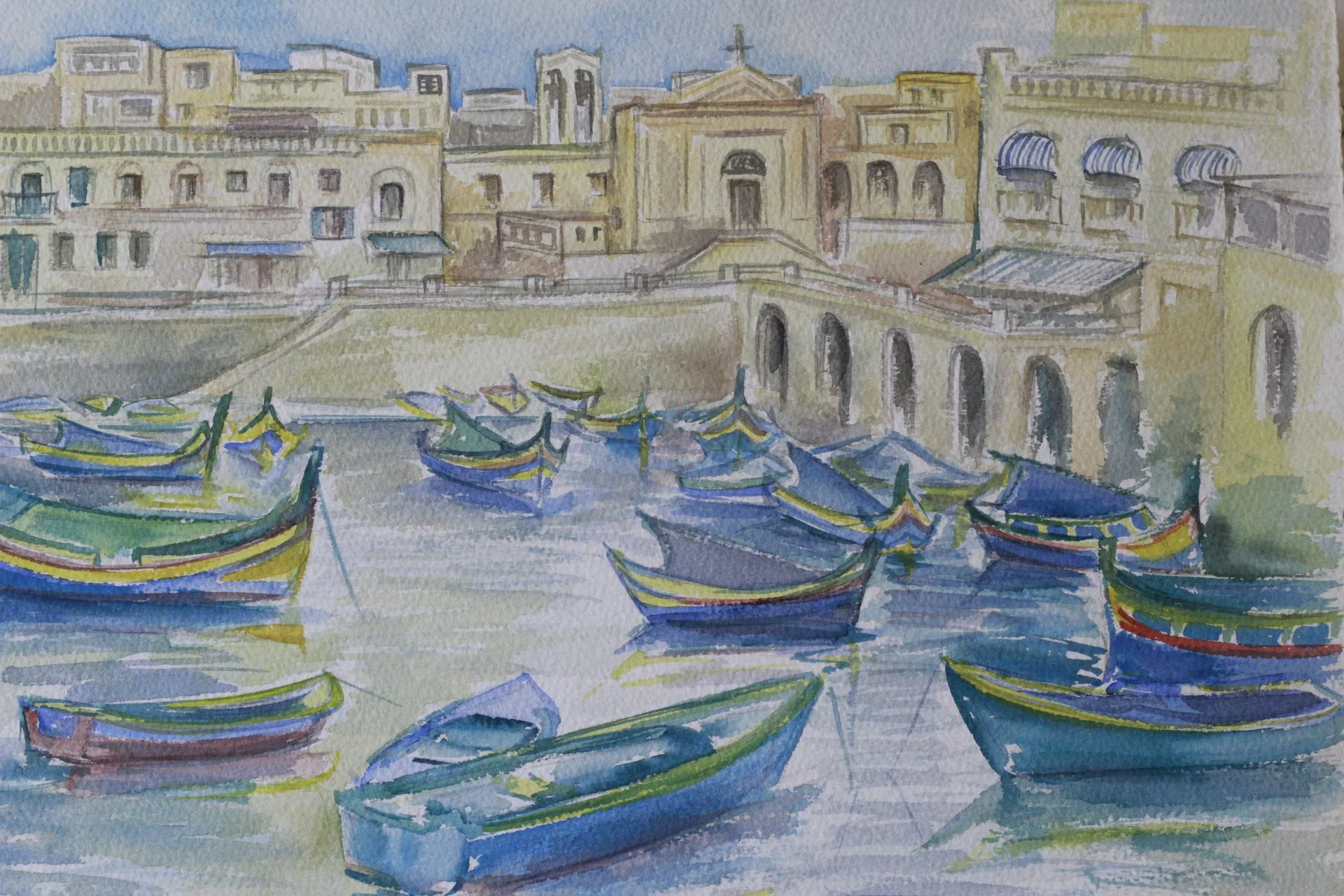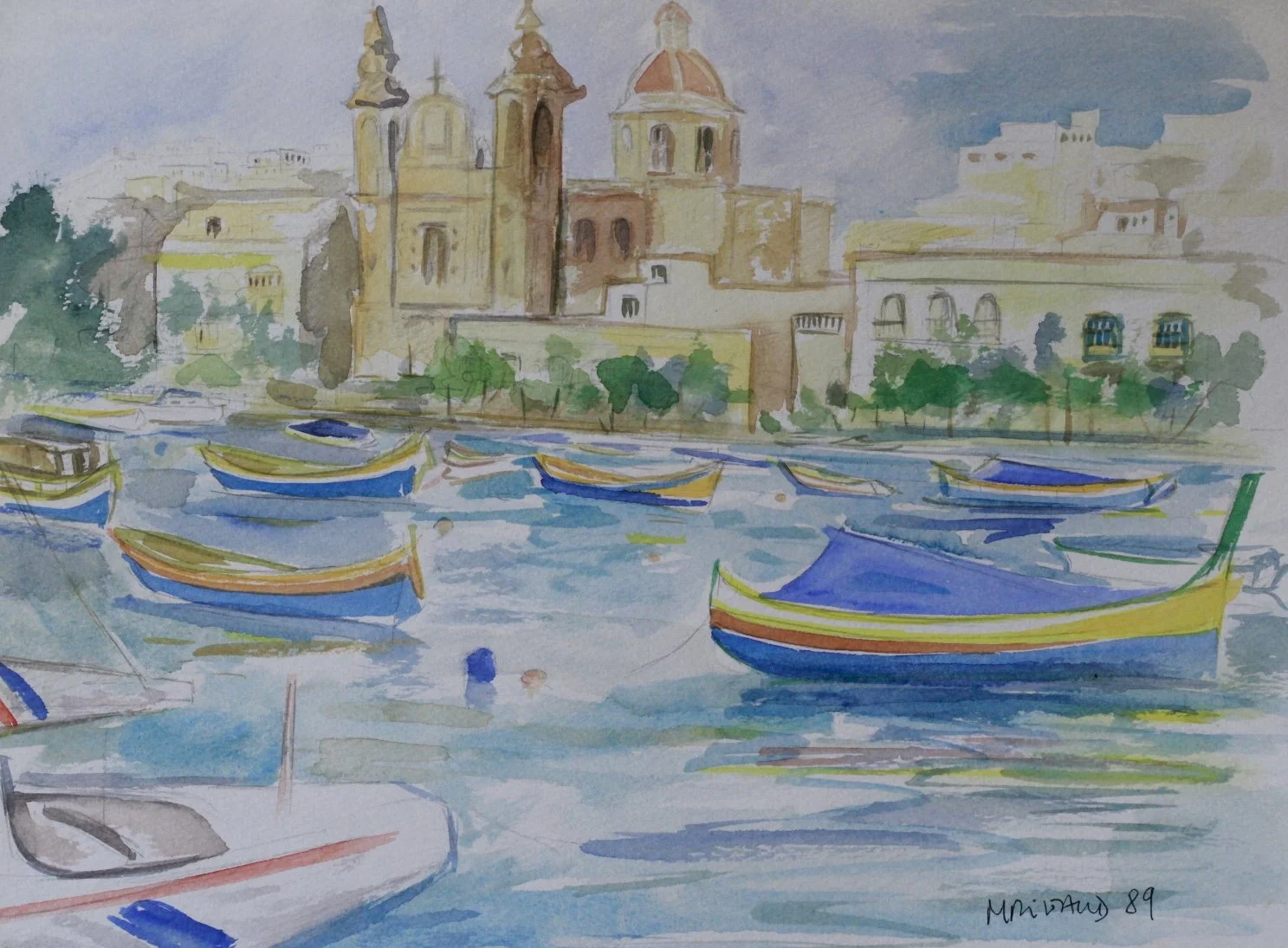 Painted Plein Air & Exhibited in France in the 90s, this watercolour collection is an infusion of scenes of Marsaxlokk, St. Julians & Kalkara.
