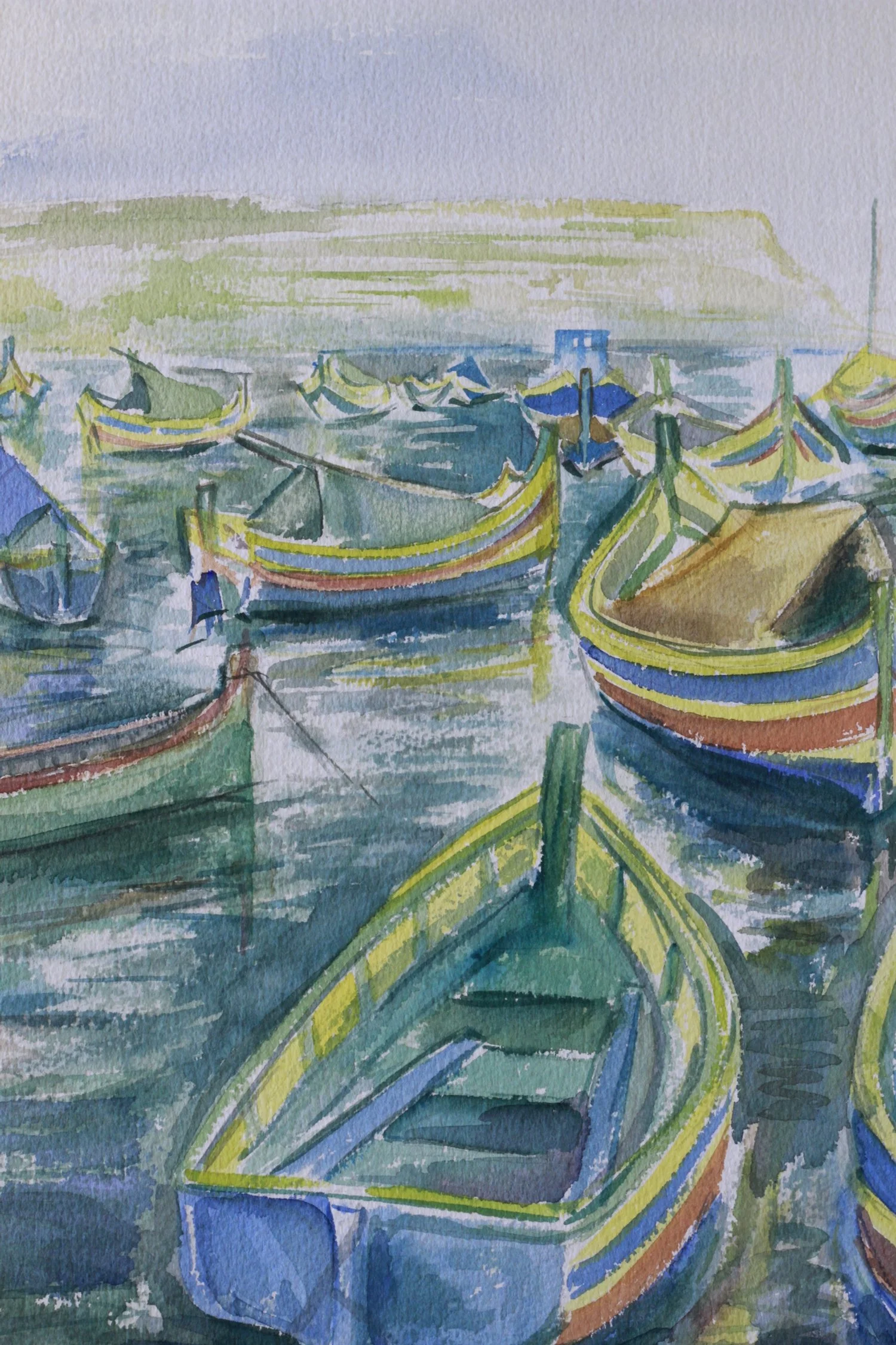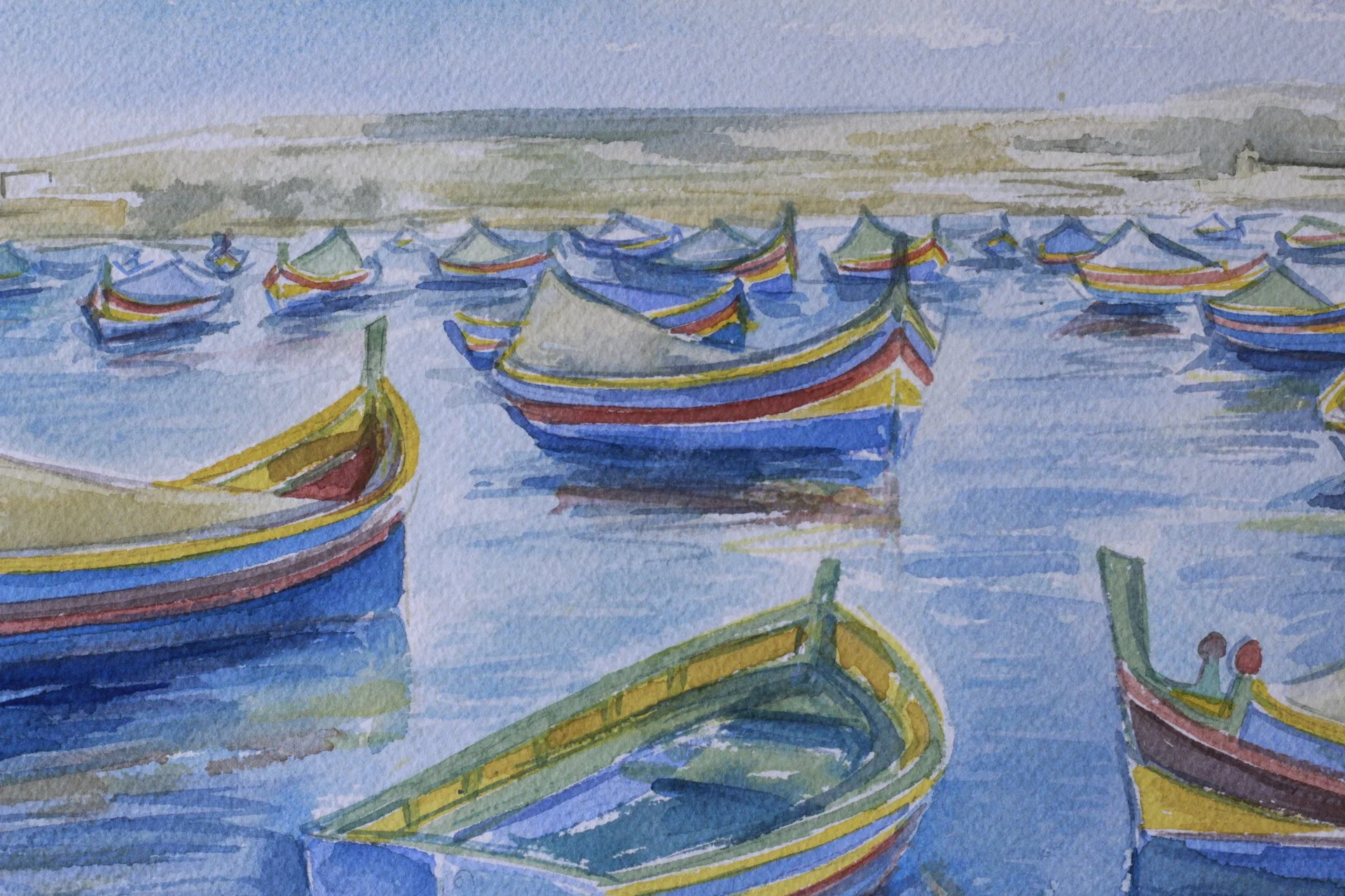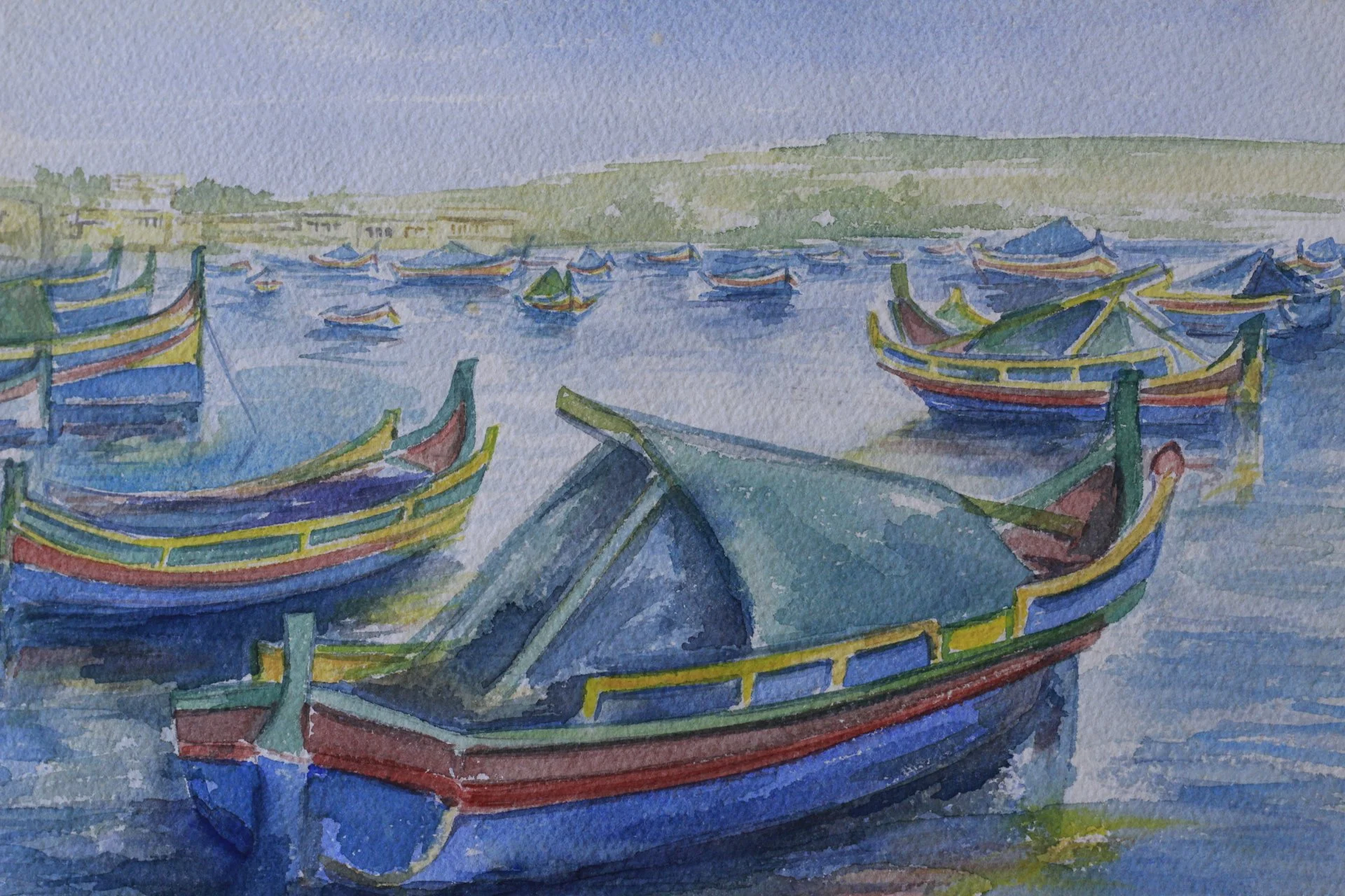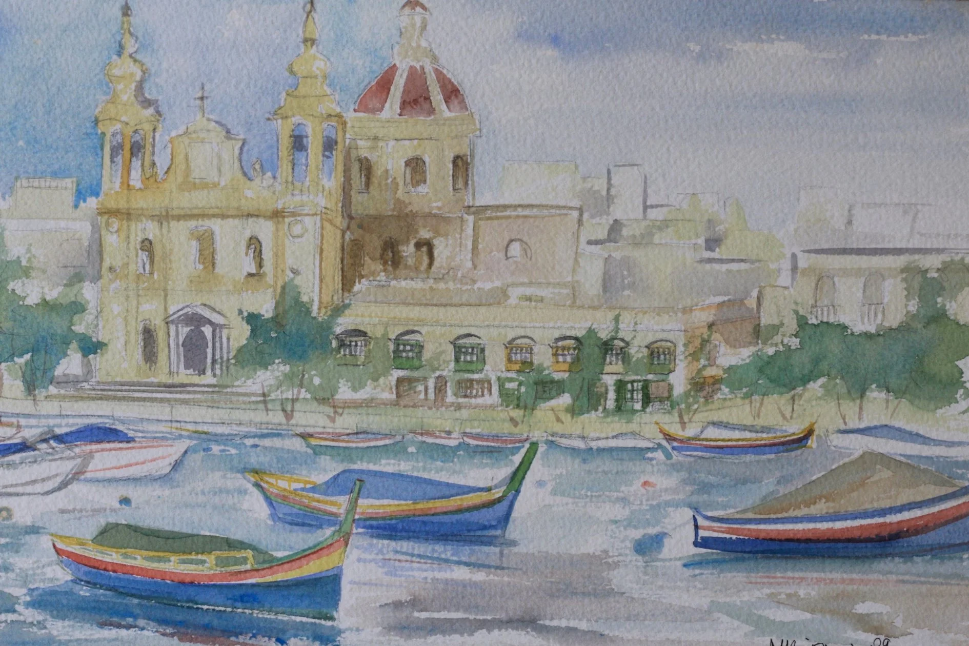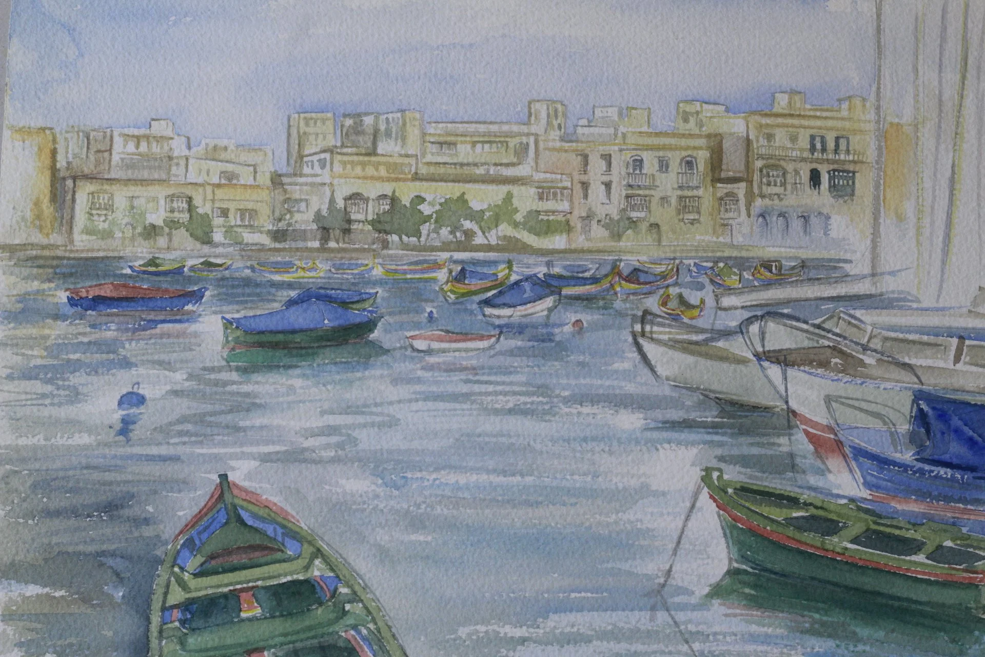 Painted Plein Air & Exhibited in France in the 90s, this watercolour collection is an infusion of scenes of Marsaxlokk, St. Julians & Kalkara.